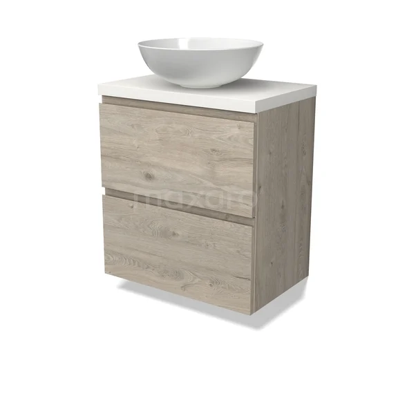Modulo Plato Badkamermeubel voor waskom | 60 cm Lichtgrijs eiken Greeploos front Mat wit blad 2 lades onder elkaar