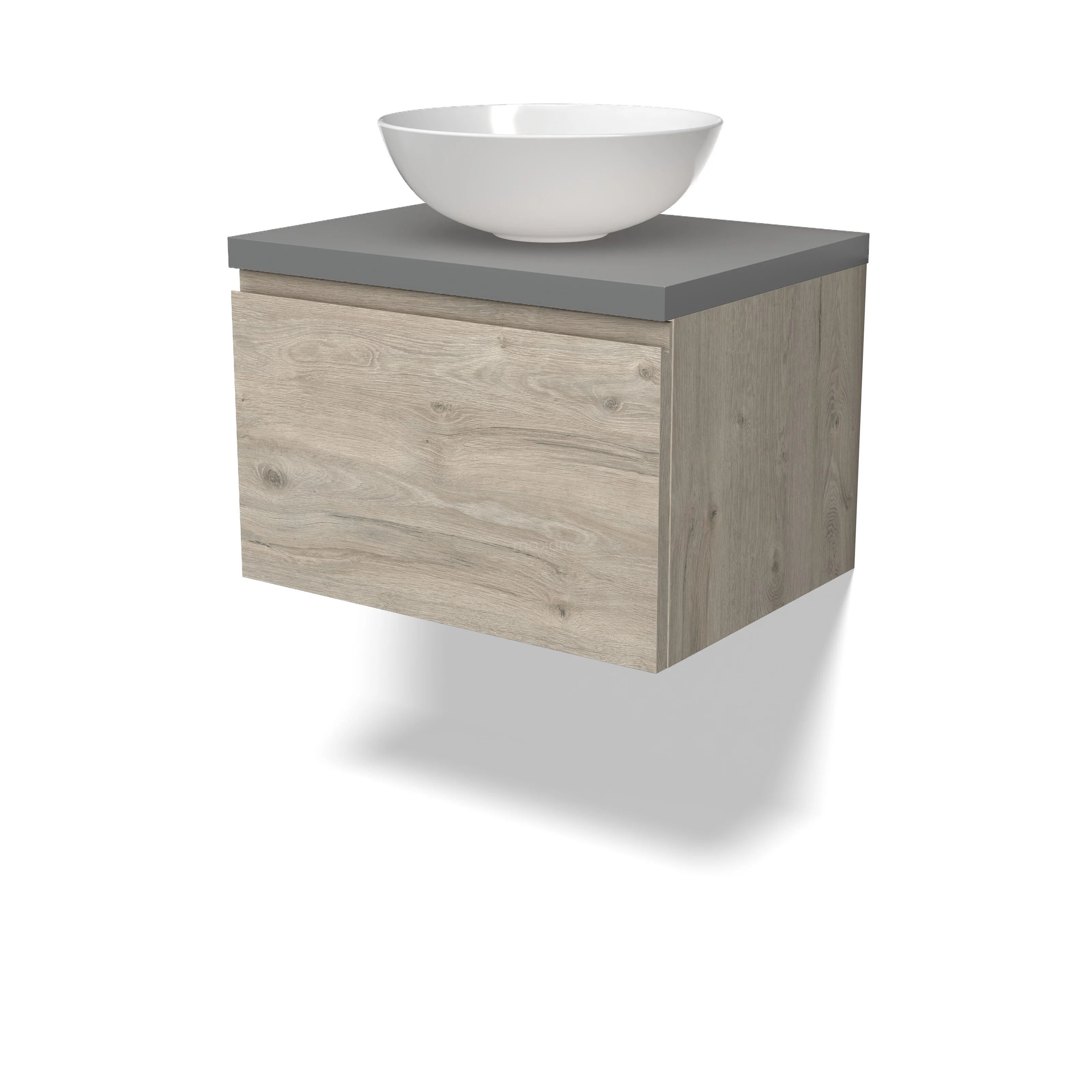 Modulo Plato Badkamermeubel voor waskom | 60 cm Lichtgrijs eiken Greeploos front Middengrijs blad 1 lade