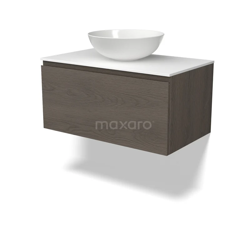 Modulo Plato Badkamermeubel voor waskom | 80 cm Donkerbruin eiken Greeploos front Solid surface blad 1 lade