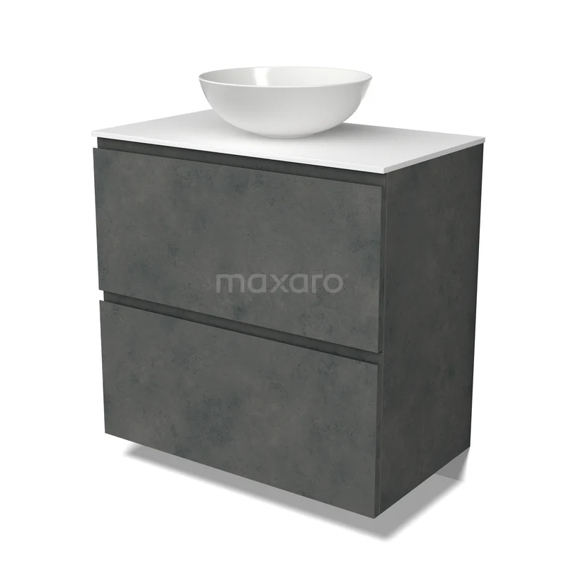 Modulo Plato Badkamermeubel voor waskom | 80 cm Donkergrijs beton Greeploos front Solid surface blad 2 hoge lades onder elkaar