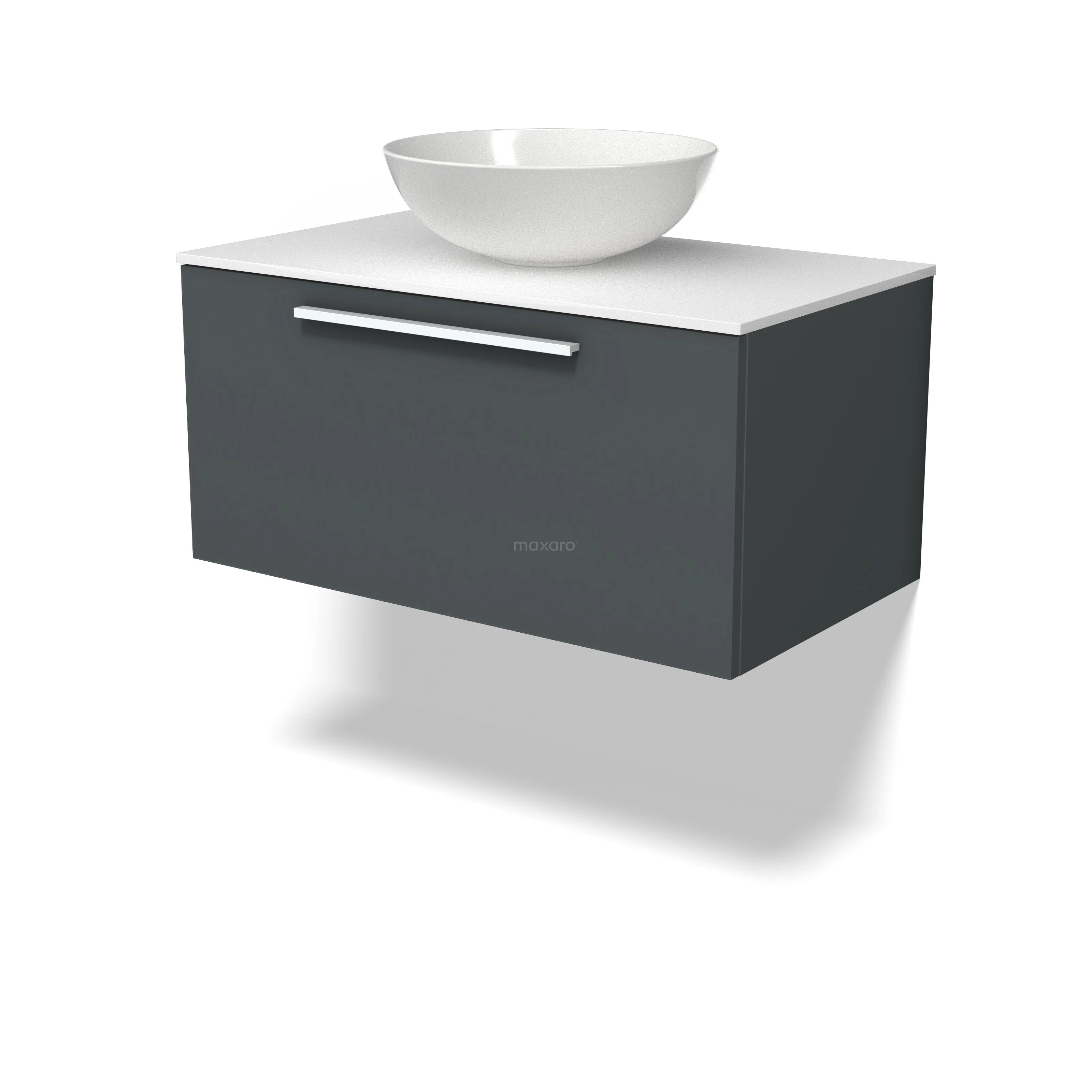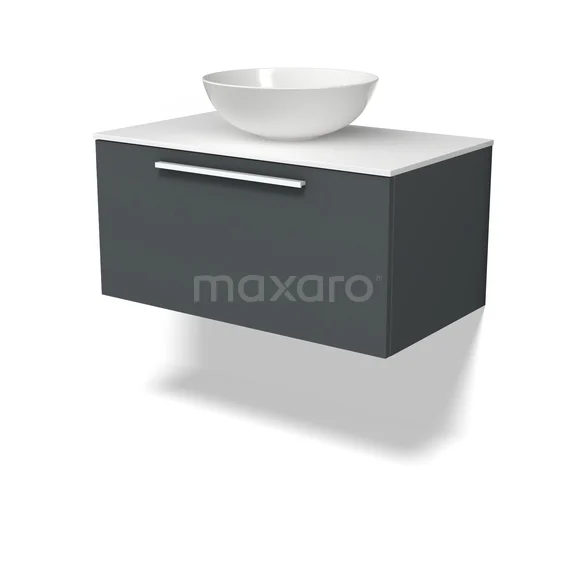 Modulo Plato Badkamermeubel voor waskom | 80 cm Donkergrijs Vlak front Solid surface blad 1 lade