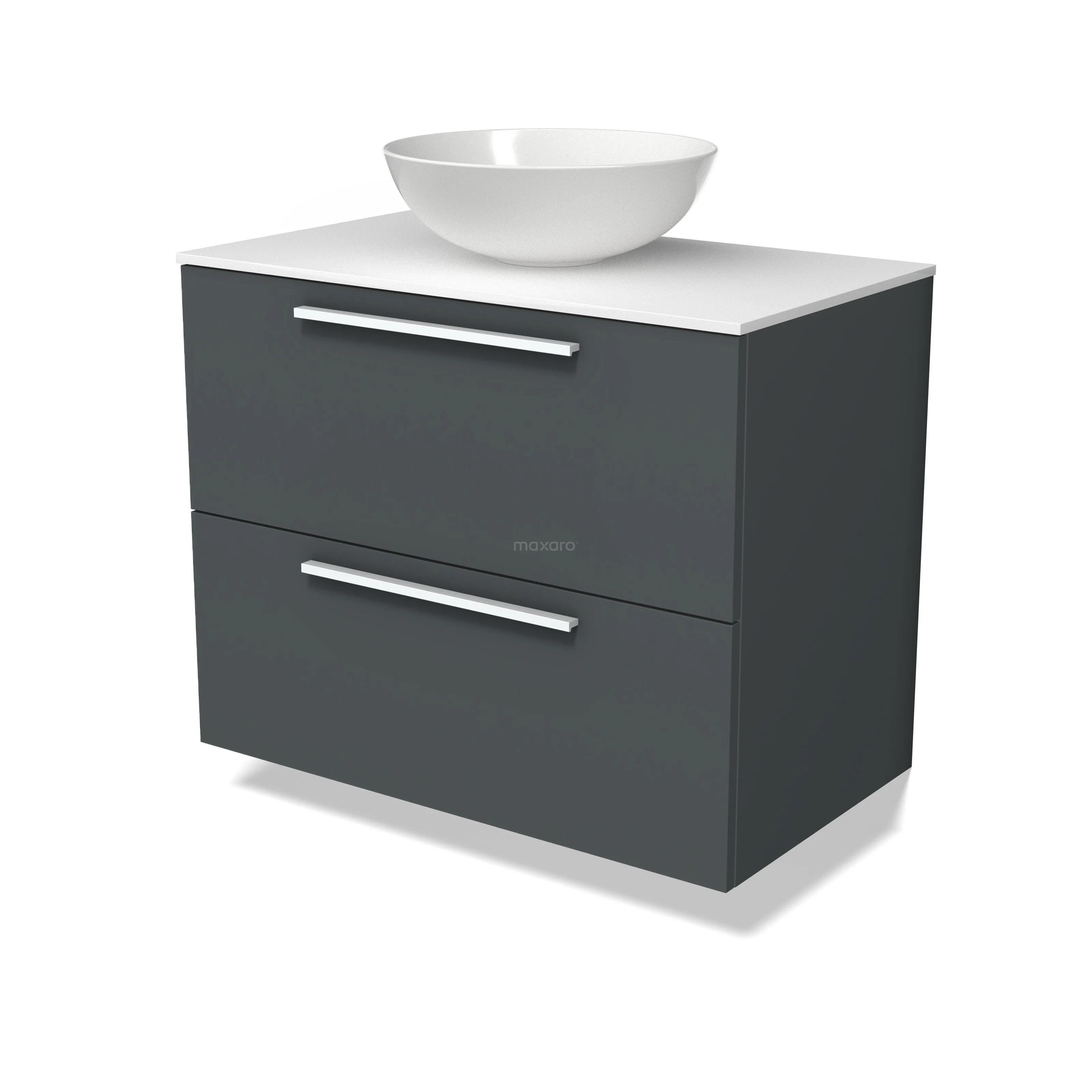 Modulo Plato Badkamermeubel voor waskom | 80 cm Donkergrijs Vlak front Solid surface blad 2 lades onder elkaar