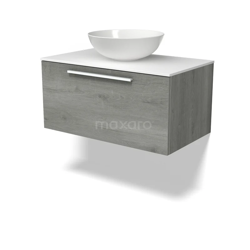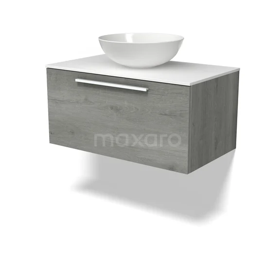 Modulo Plato Badkamermeubel voor waskom | 80 cm Grijs eiken Vlak front Solid surface blad 1 lade