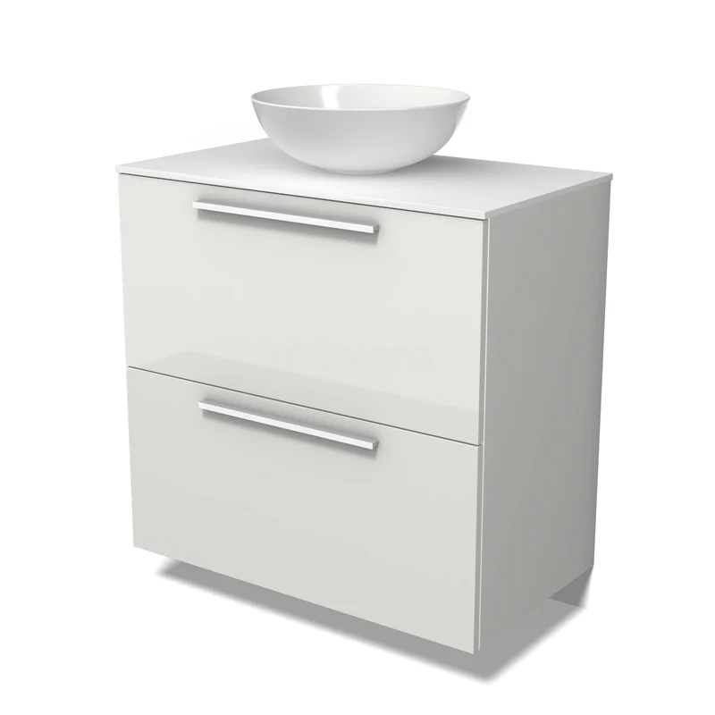 Modulo Plato Badkamermeubel voor waskom | 80 cm Hoogglans wit Vlak front Solid surface blad 2 hoge lades onder elkaar