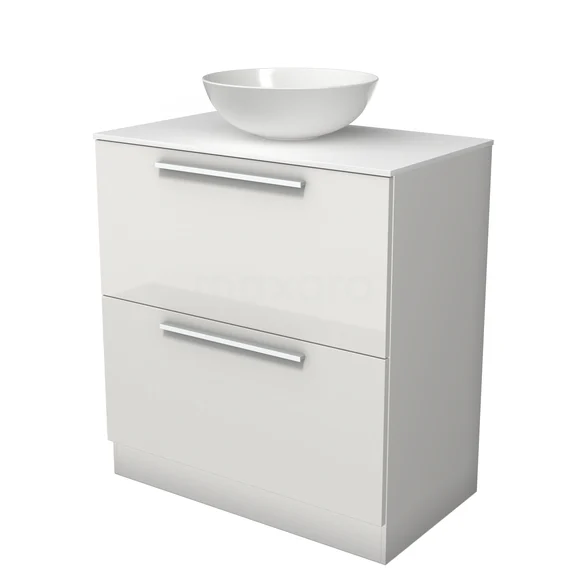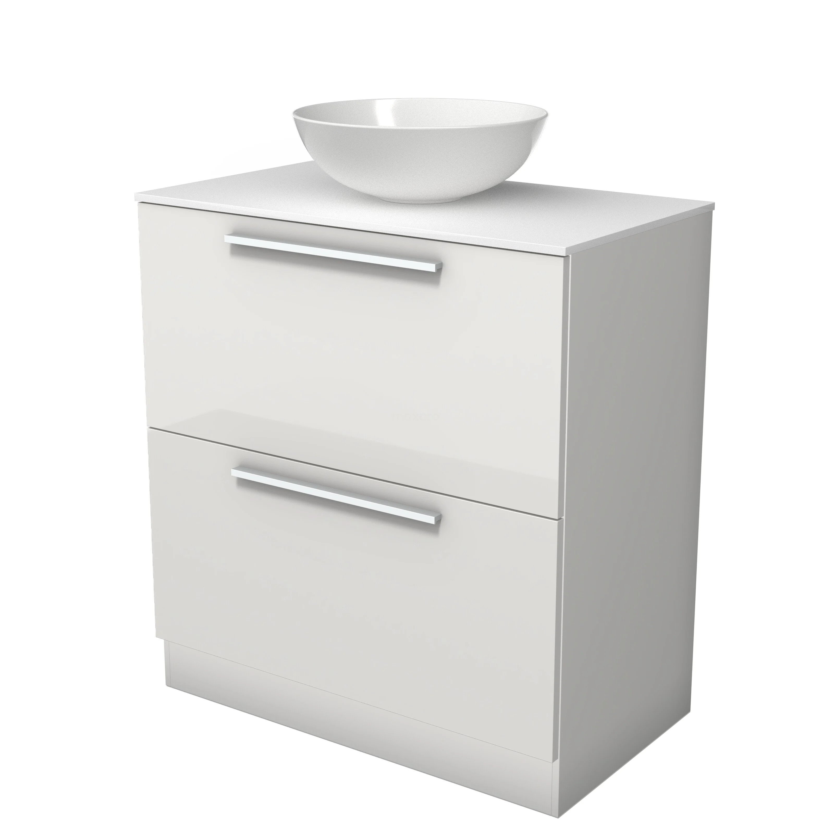 Modulo Plato Badkamermeubel voor waskom | 80 cm Hoogglans wit Vlak front Solid surface blad 2 hoge lades onder elkaar staand