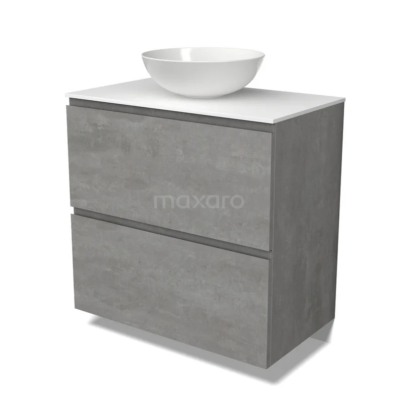 Modulo Plato Badkamermeubel voor waskom | 80 cm Lichtgrijs beton Greeploos front Solid surface blad 2 hoge lades onder elkaar