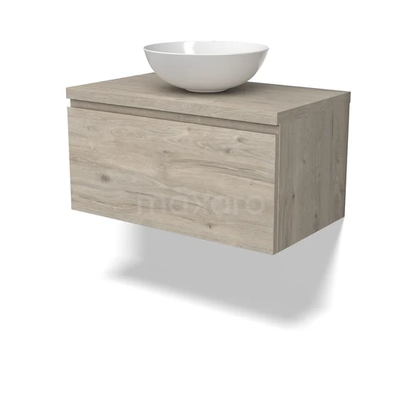 Modulo Plato Badkamermeubel voor waskom | 80 cm Lichtgrijs eiken Greeploos front Lichtgrijs eiken blad 1 lade