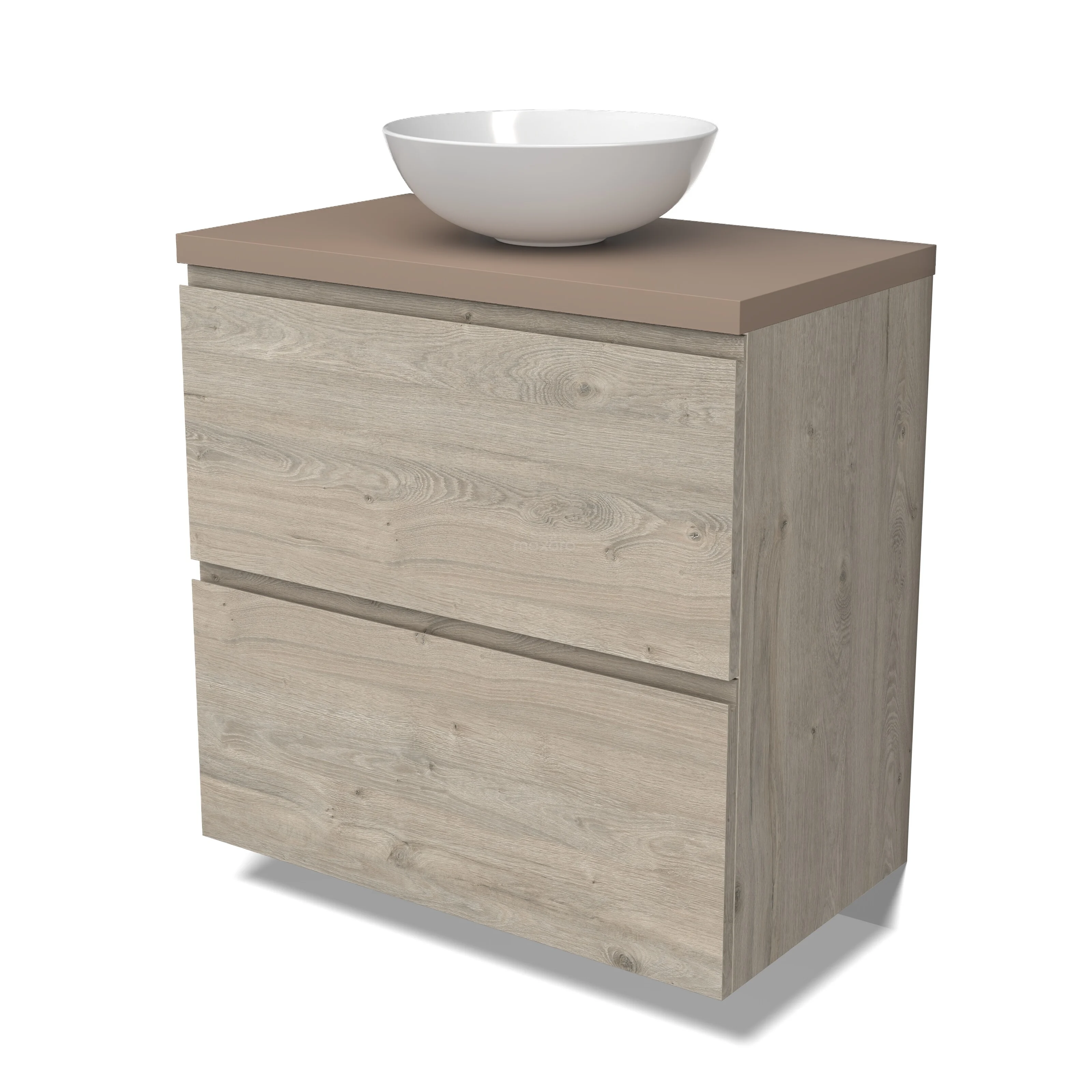 Modulo Plato Badkamermeubel voor waskom | 80 cm Lichtgrijs eiken Greeploos front Taupe blad 2 hoge lades onder elkaar