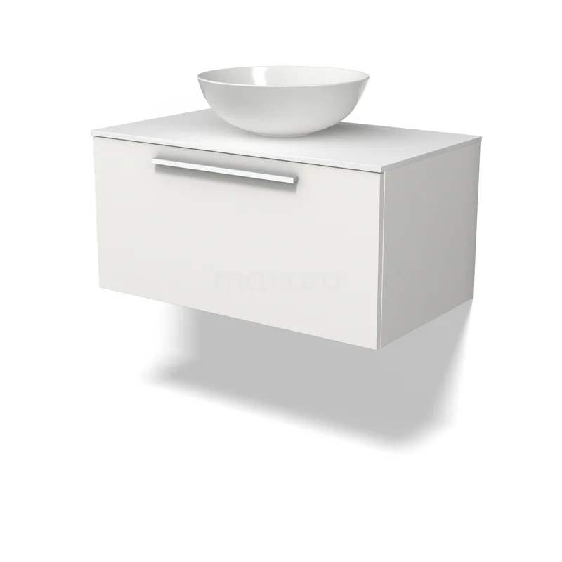 Modulo Plato Badkamermeubel voor waskom | 80 cm Mat wit Vlak front Solid surface blad 1 lade