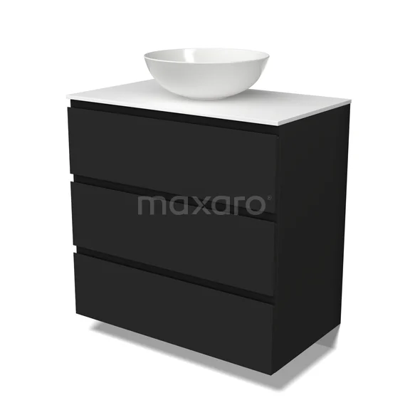 Modulo Plato Badkamermeubel voor waskom | 80 cm Mat zwart Greeploos front Solid surface blad 3 lades