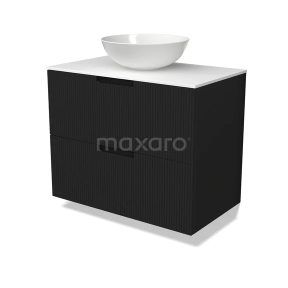 Modulo Plato Badkamermeubel voor waskom | 80 cm Mat zwart Lijn front Solid surface blad 2 lades onder elkaar