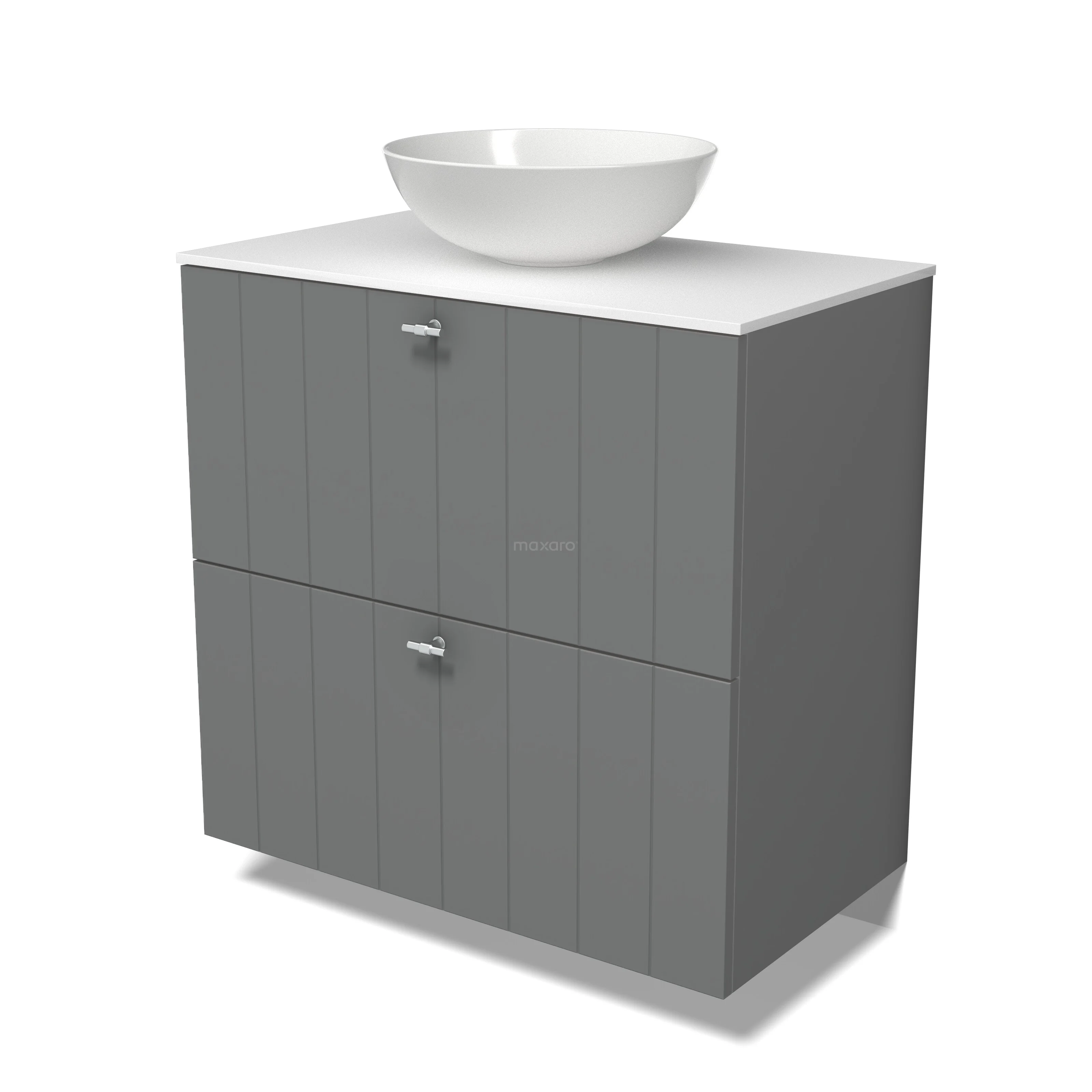 Modulo Plato Badkamermeubel voor waskom | 80 cm Middengrijs Lamel front Solid surface blad 2 hoge lades onder elkaar