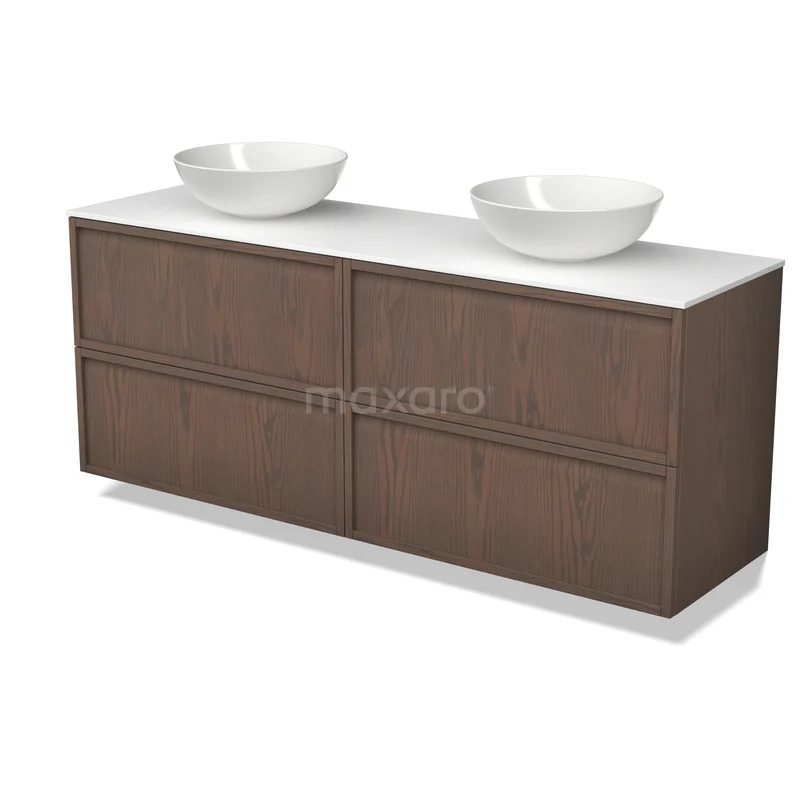 Modulo Plato Plus Badkamermeubel voor waskom | 160 cm Cacao eik Frame front Solid surface blad 4 lades