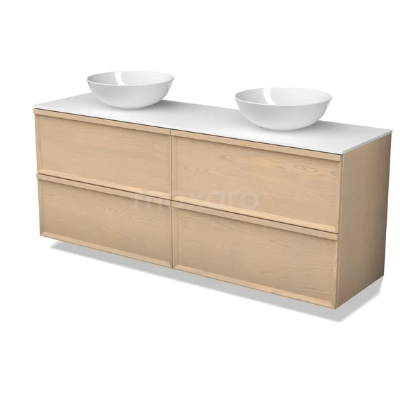 Modulo Plato Plus Badkamermeubel voor waskom | 160 cm Naturel eik Facet front Solid surface blad 4 lades