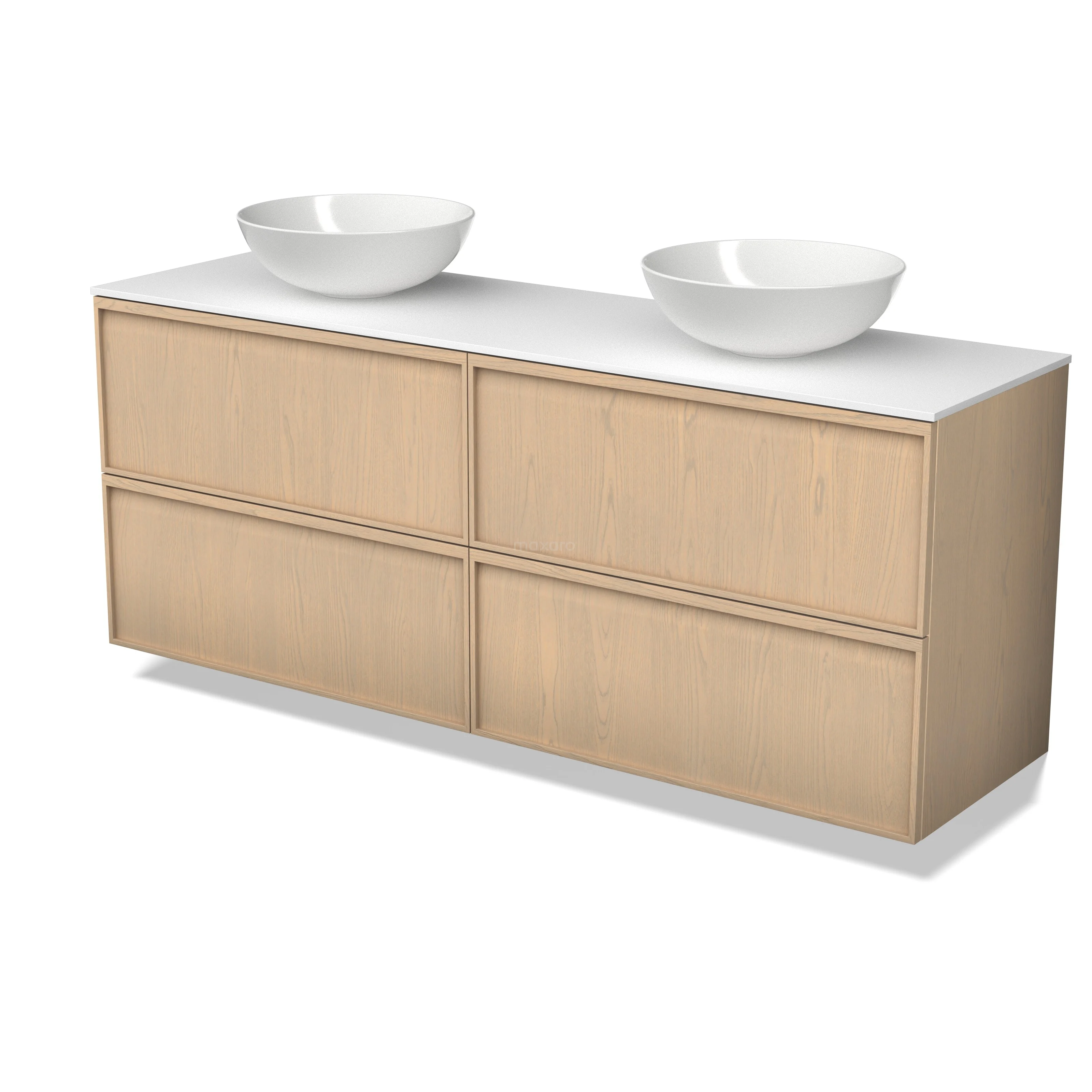 Modulo Plato Plus Badkamermeubel voor waskom | 160 cm Naturel eik Lijst front Solid surface blad 4 lades