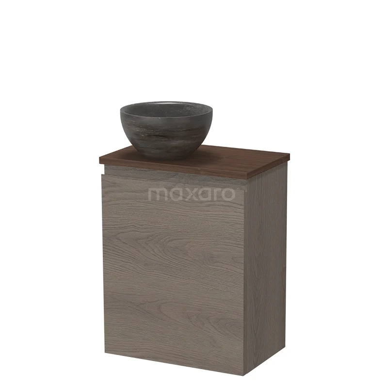 Modulo Pico Toiletmeubel met waskom | 41 cm Donkerbruin eiken Greeploos front Natuursteen waskom
