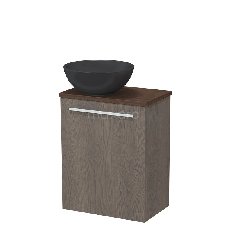 Modulo Pico Toiletmeubel met waskom | 41 cm Donkerbruin eiken Vlak front Quartz waskom