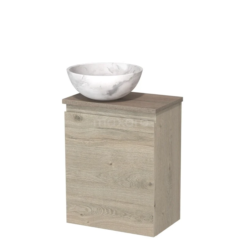 Modulo Pico Toiletmeubel met waskom | 41 cm Lichtgrijs eiken Greeploos front Natuursteen waskom
