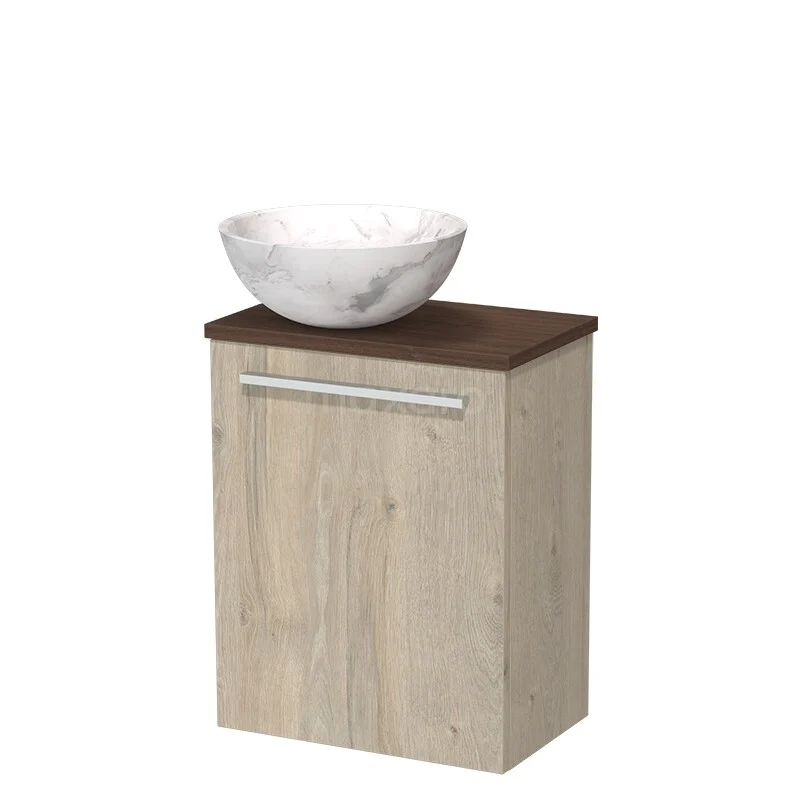 Modulo Pico Toiletmeubel met waskom | 41 cm Lichtgrijs eiken Vlak front Natuursteen waskom