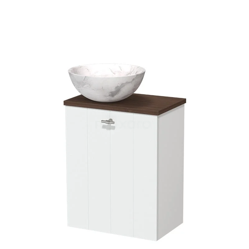Modulo Pico Toiletmeubel met waskom | 41 cm Mat wit Lamel front Natuursteen waskom