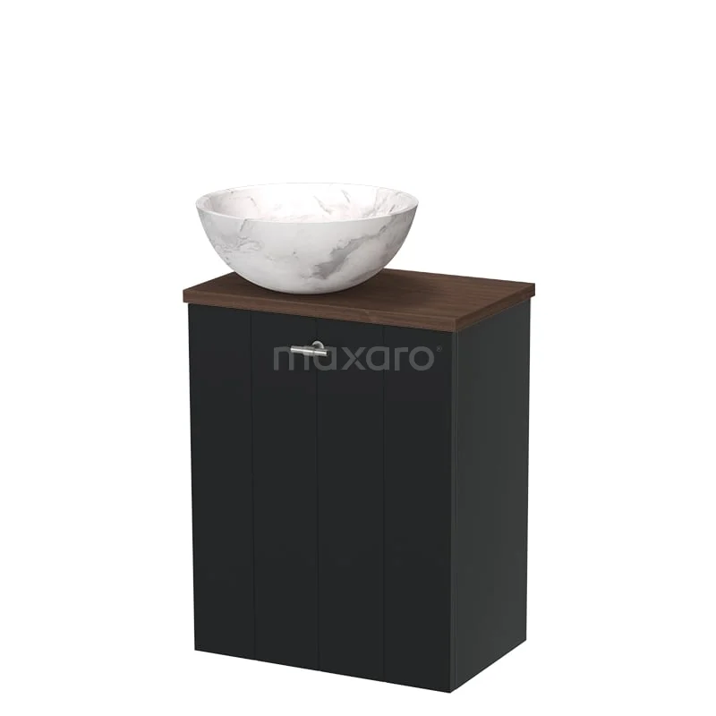 Modulo Pico Toiletmeubel met waskom | 41 cm Mat zwart Lamel front Natuursteen waskom