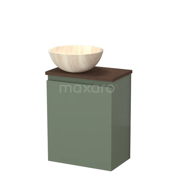 Modulo Pico Toiletmeubel met waskom | 41 cm Saliegroen Greeploos front Natuursteen waskom