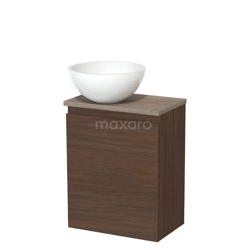 Modulo Pico Toiletmeubel met waskom | 41 cm Walnoot Greeploos front Mineraalmarmer waskom