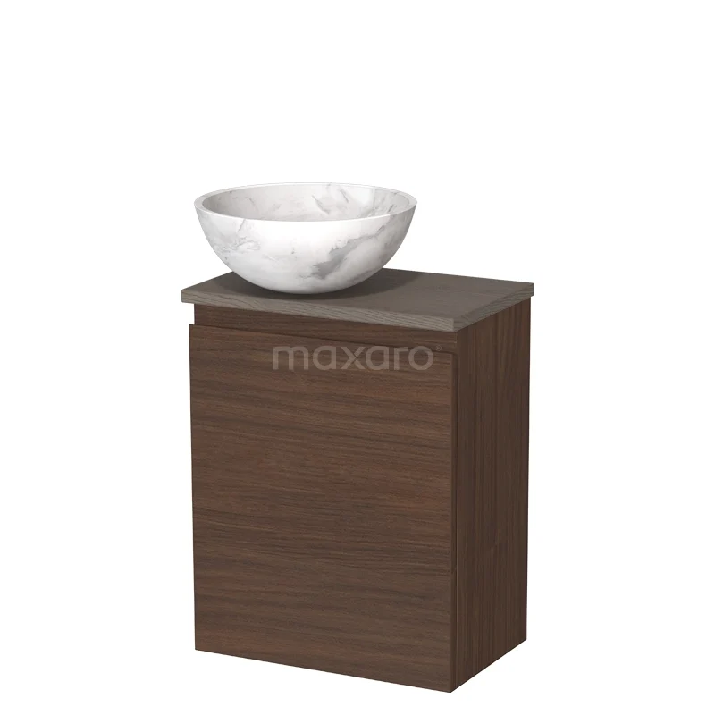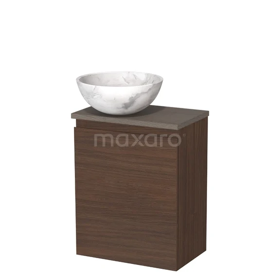 Modulo Pico Toiletmeubel met waskom | 41 cm Walnoot Greeploos front Natuursteen waskom