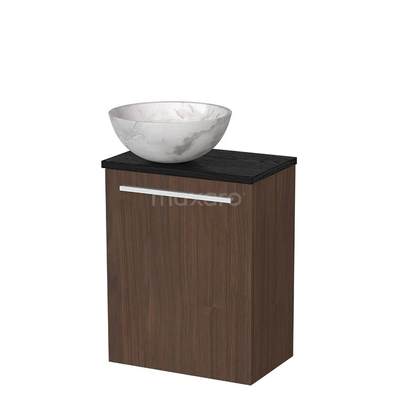 Modulo Pico Toiletmeubel met waskom | 41 cm Walnoot Vlak front Natuursteen waskom