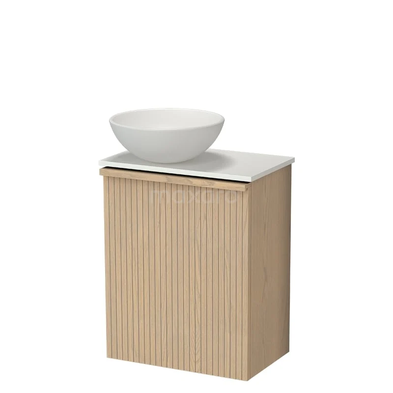 Modulo Plus Pico Toiletmeubel met waskom | 41 cm Naturel eik Ribbel front Mat wit Keramiek waskom