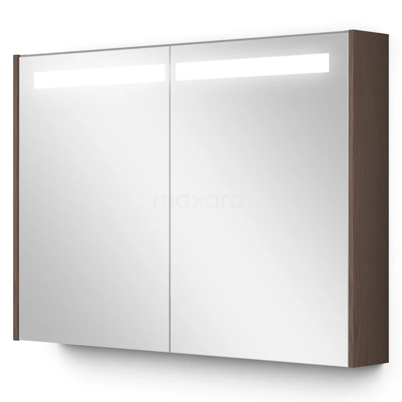 Dit stijlvolle exemplaar heeft een rechthoekig design en is uitgevoerd in cacao eik. Deze kleur is perfect af te stemmen op uw Modulo-badkamermeubel en zorgt voor een industriële touch in het interieur. Verder geeft de verlichting boven- en onderaan het geheel een sfeervolle uitstraling. Het licht is te bedienen middels een aan- en uitschakelaar. Daarbij is ook de kleurtemperatuur instelbaar.