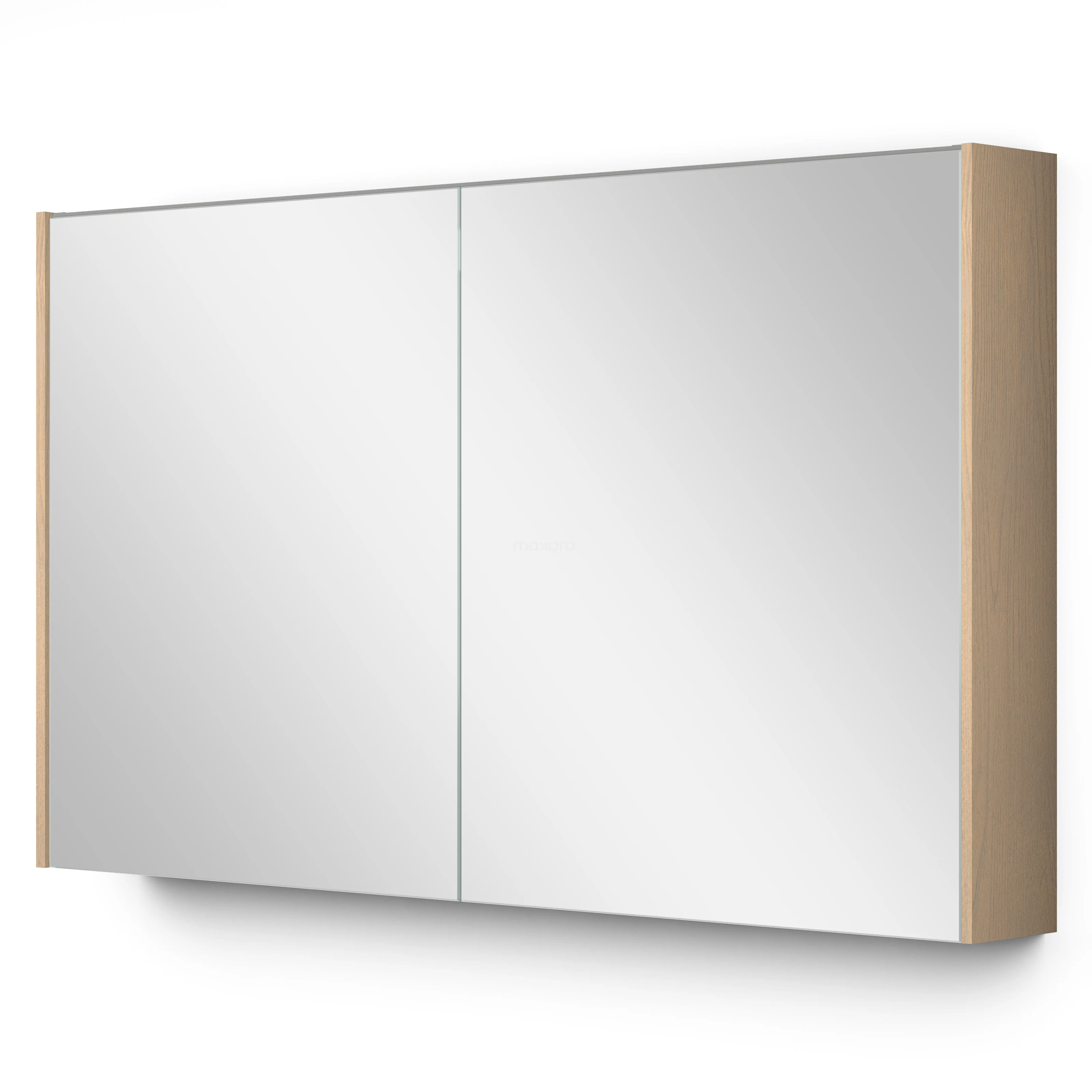 Dit stijlvolle exemplaar heeft een rechthoekig design en is uitgevoerd in naturel eik. Deze kleur is perfect af te stemmen op uw Modulo-badkamermeubel en zorgt voor een industriële touch in het interieur. Verder geeft de verlichting boven- en onderaan het geheel een sfeervolle uitstraling. Het licht is te bedienen middels een aan- en uitschakelaar. Daarbij is ook de kleurtemperatuur instelbaar.