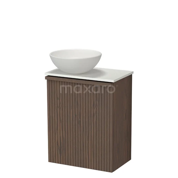 Modulo Plus Pico Toiletmeubel met waskom | 41 cm Cacao eik Ribbel front Mat wit Keramiek waskom