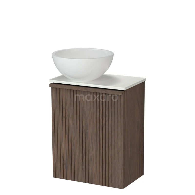 Modulo Plus Pico Toiletmeubel met waskom | 41 cm Cacao eik Ribbel front Hoogglans wit Mineraalmarmer waskom