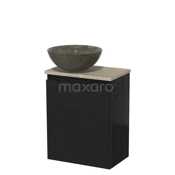 Toiletmeubel met waskom | 41 cm Zwart eiken Greeploos front Blue stone Natuursteen waskom Lichtgrijs eiken blad