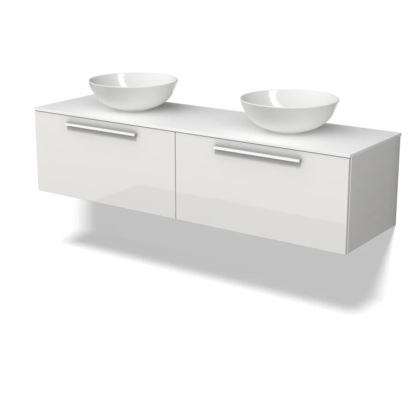 Modulo Plato Badkamermeubel voor waskom | 160 cm Hoogglans wit Vlak front Solid surface blad 2 lades naast elkaar