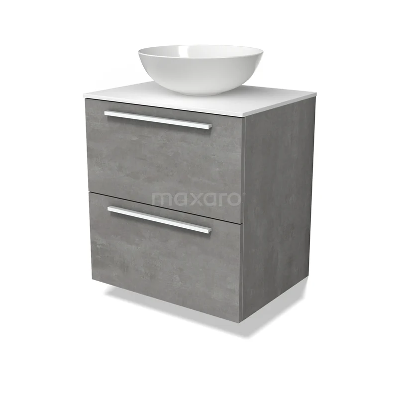 Modulo Plato Badkamermeubel voor waskom | 60 cm Lichtgrijs beton Vlak front Solid surface blad 2 lades onder elkaar