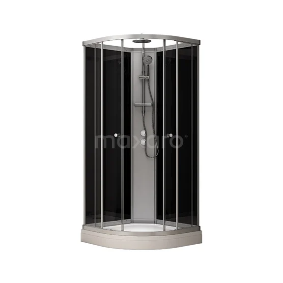 Modera Volledige Douchecabine | 100x100 cm Zwart glas Schuifdeur Kwartrond