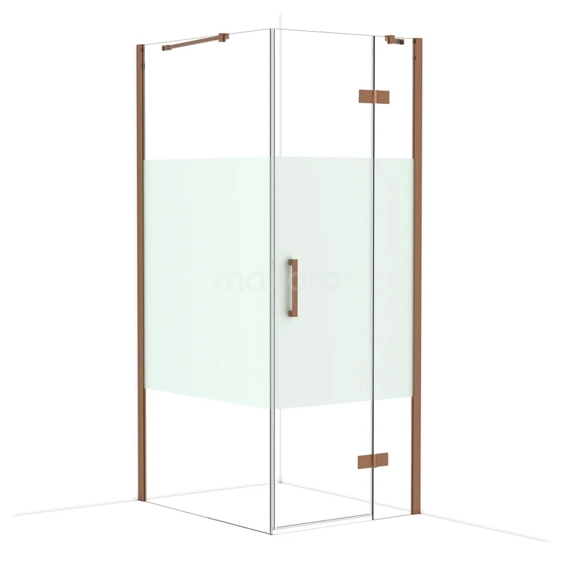 Diamond Douchecabine | 100x80 cm Glanzend koper Helder met matte strook Draaideur Rechthoek
