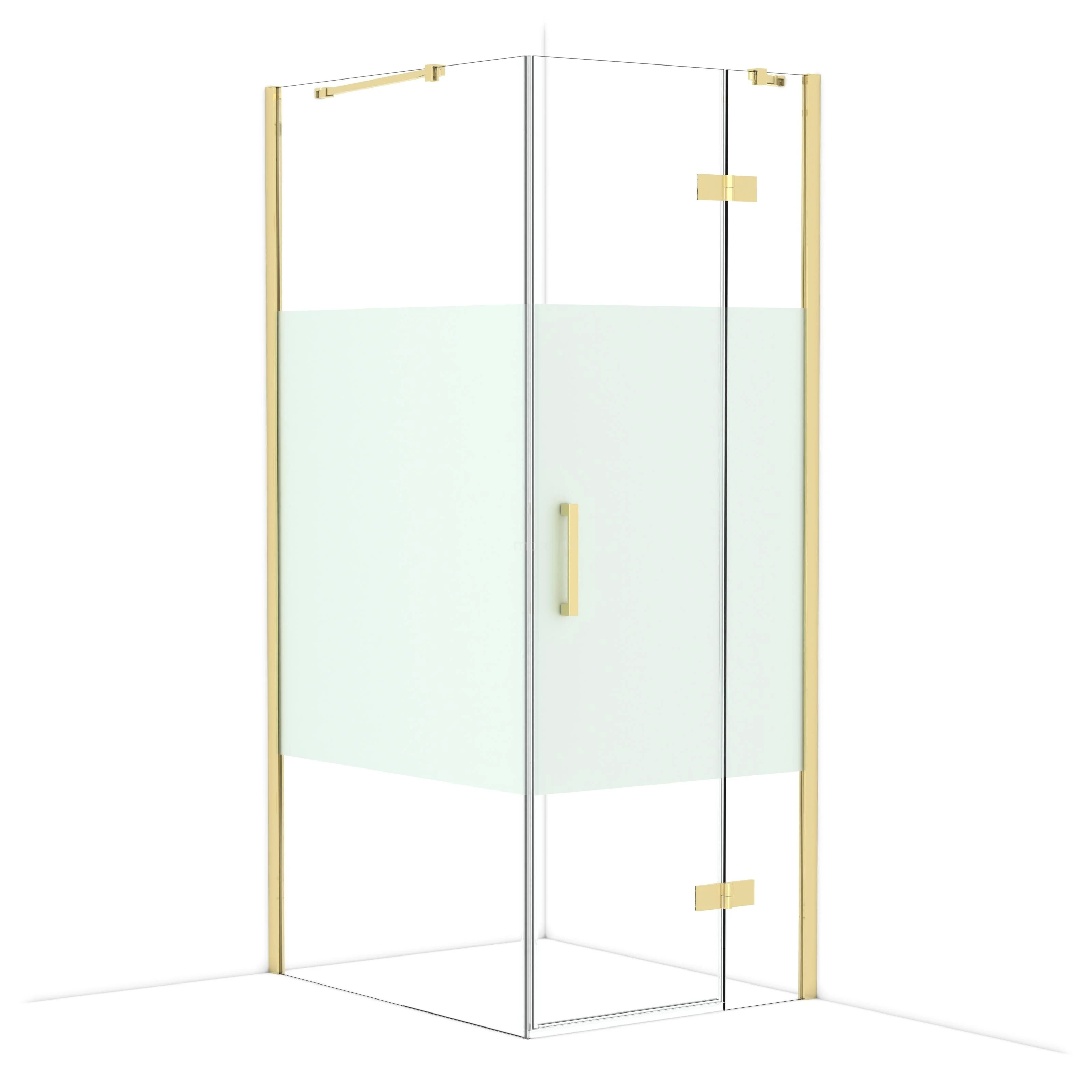 In de stijlvolle Diamond-douchecabine met een afmeting van 100x80 cm geniet je dagelijks van heerlijke douchesessies. Deze rechthoekige cabine kenmerkt zich door een muurprofiel en het verticale handvat. Dit exemplaar heeft een verfijnd en luxe design van glanzend lichtgoud en is voorzien van helder glas met matte strook voor meer privacy. De douche is verstelbaar, waardoor je deze gemakkelijk passend maakt.