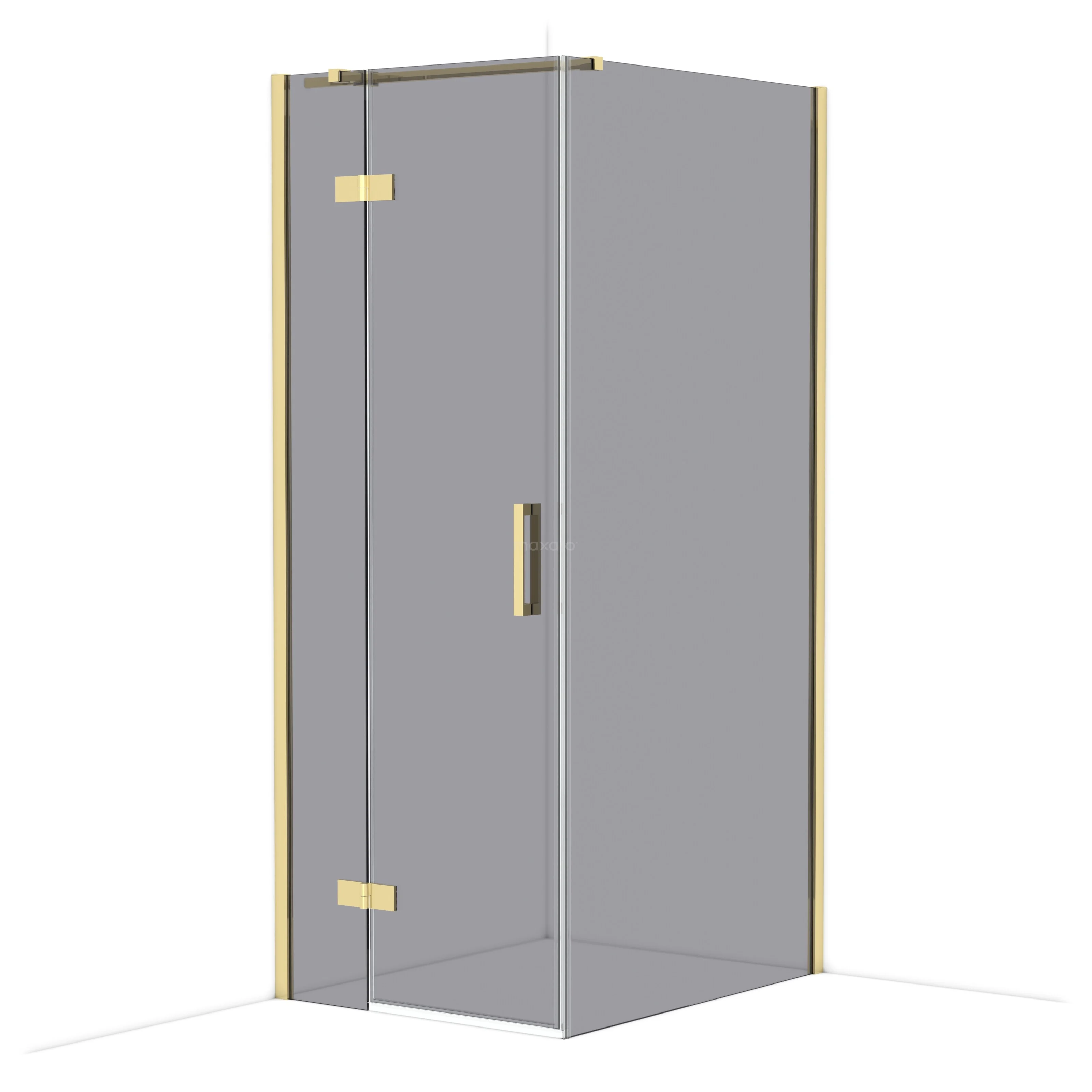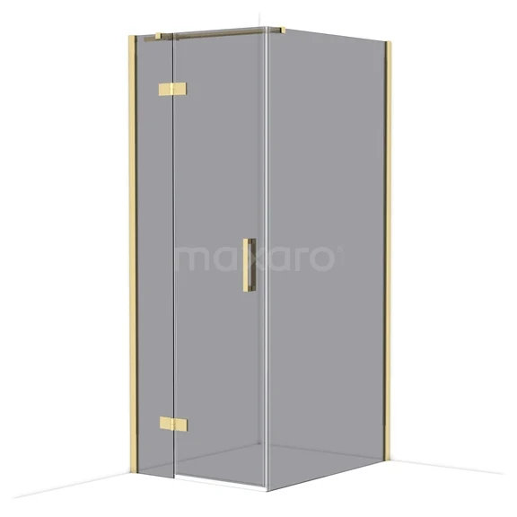 Diamond Douchecabine | 100x80 cm Glanzend lichtgoud Rookglas Draaideur Rechthoek