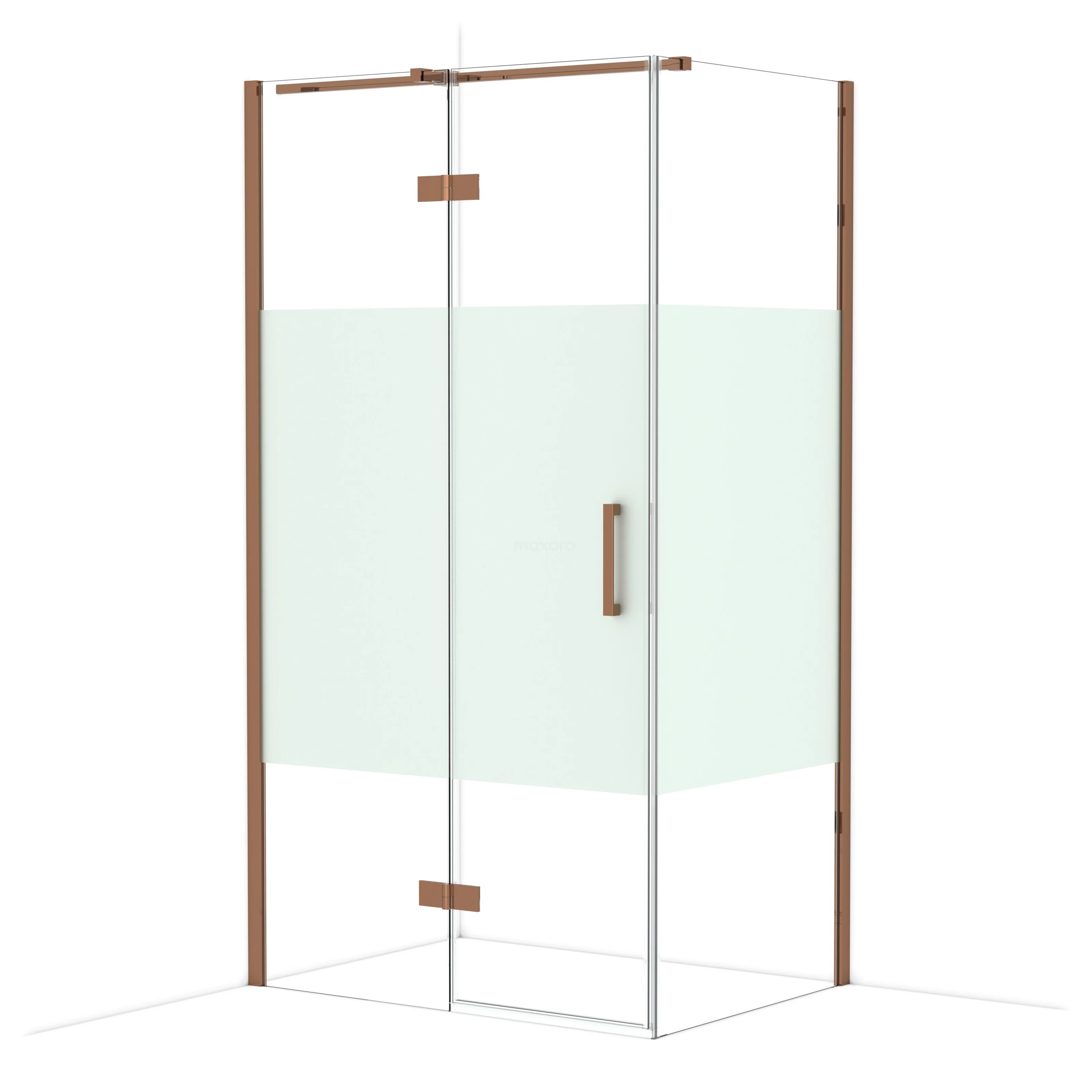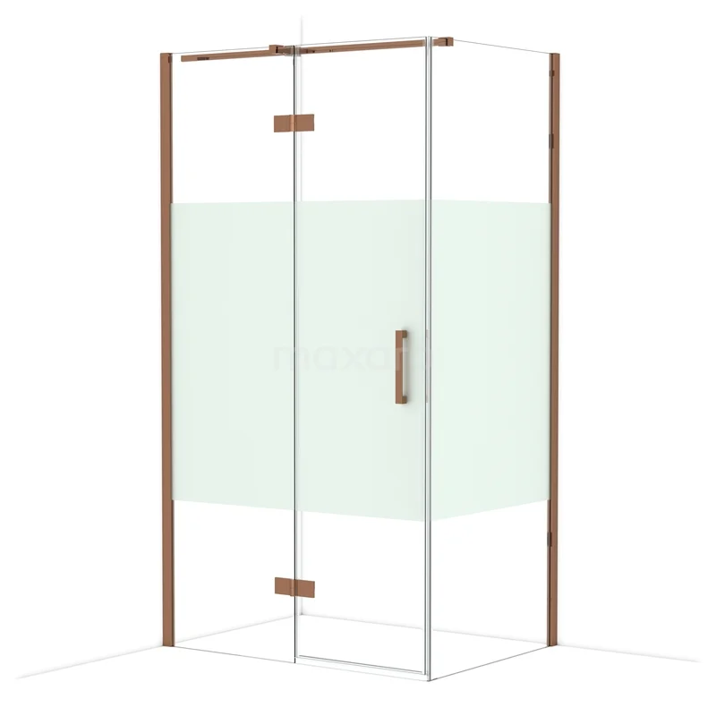 Diamond Douchecabine | 110x80 cm Glanzend koper Helder met matte strook Draaideur Rechthoek