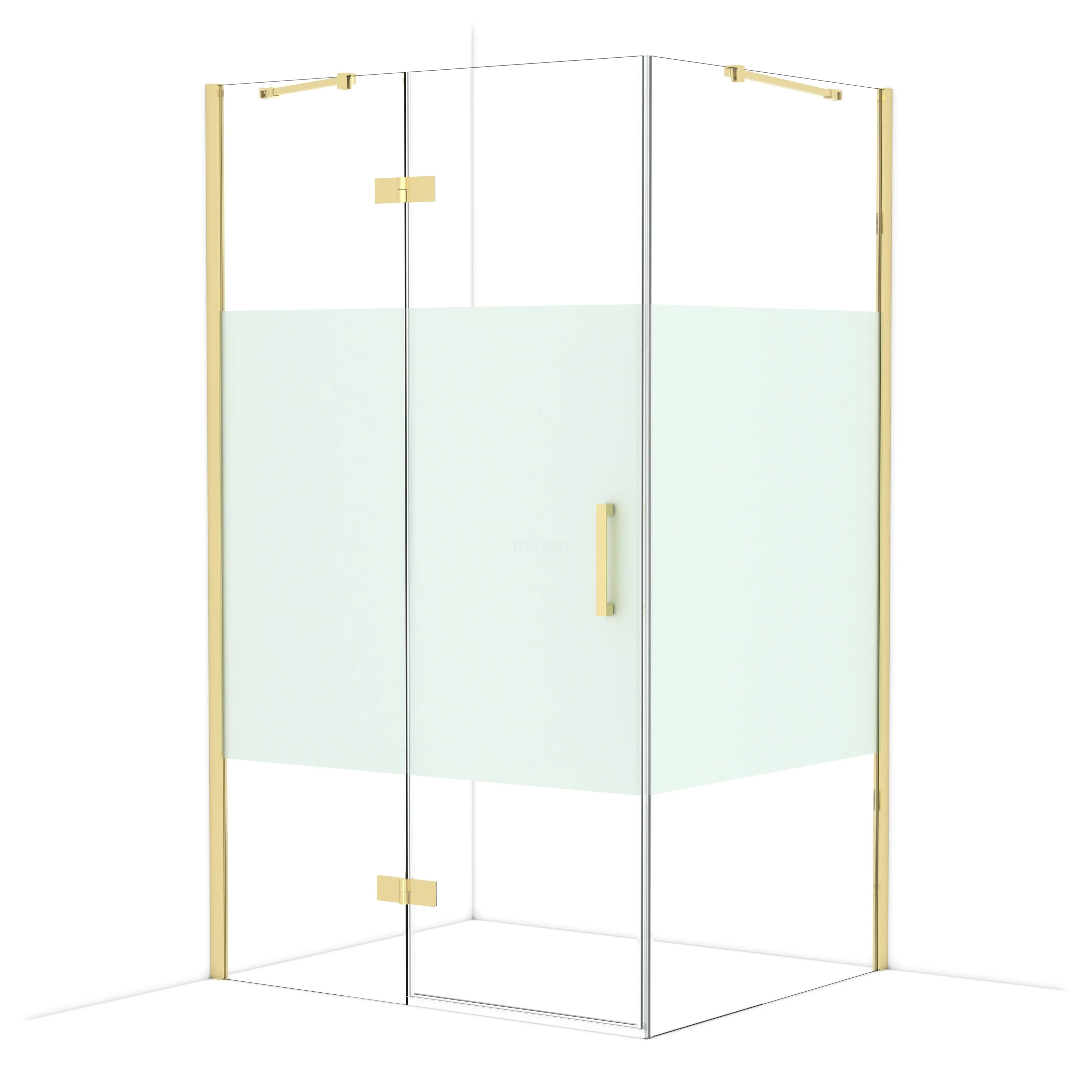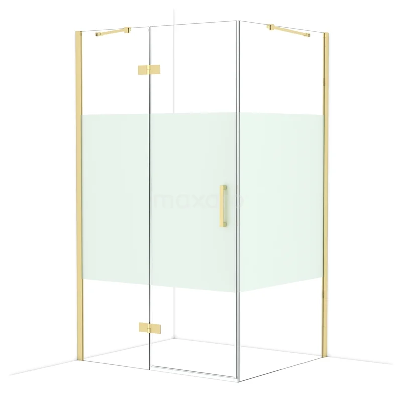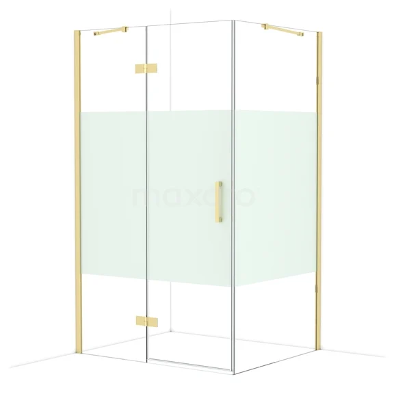 Diamond Douchecabine | 120x100 cm Glanzend lichtgoud Helder met matte strook Draaideur Rechthoek
