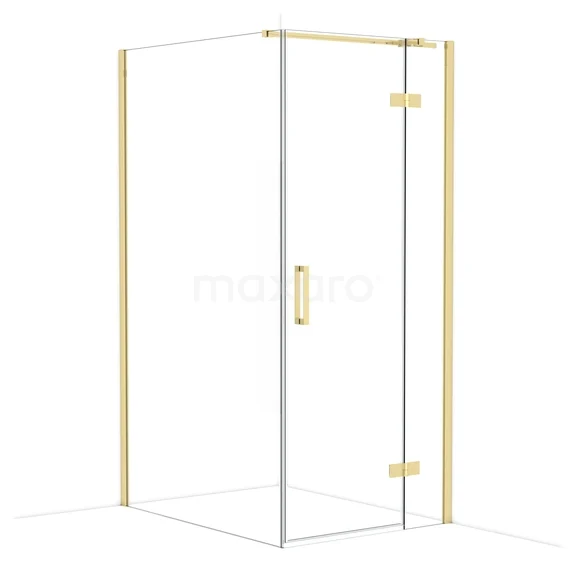 Diamond Douchecabine | 120x90 cm Glanzend lichtgoud Helder glas Draaideur Rechthoek