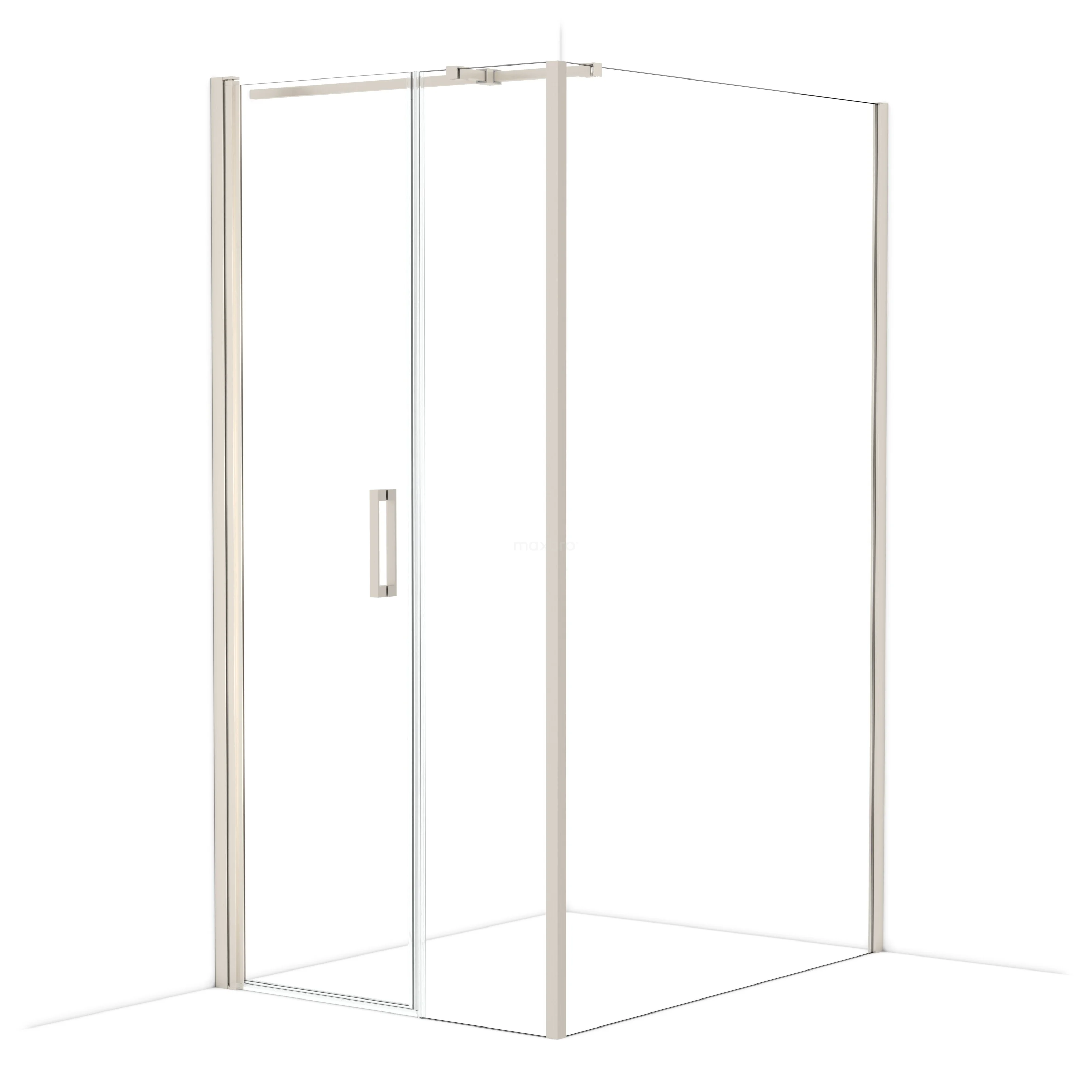 De douchecabine is uitgerust met een draaideur, waardoor u de volledige instapruimte ter beschikking heeft.