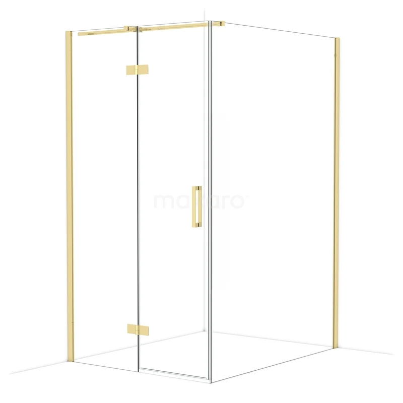 Diamond Douchecabine | 140x110 cm Glanzend lichtgoud Helder glas Draaideur Rechthoek