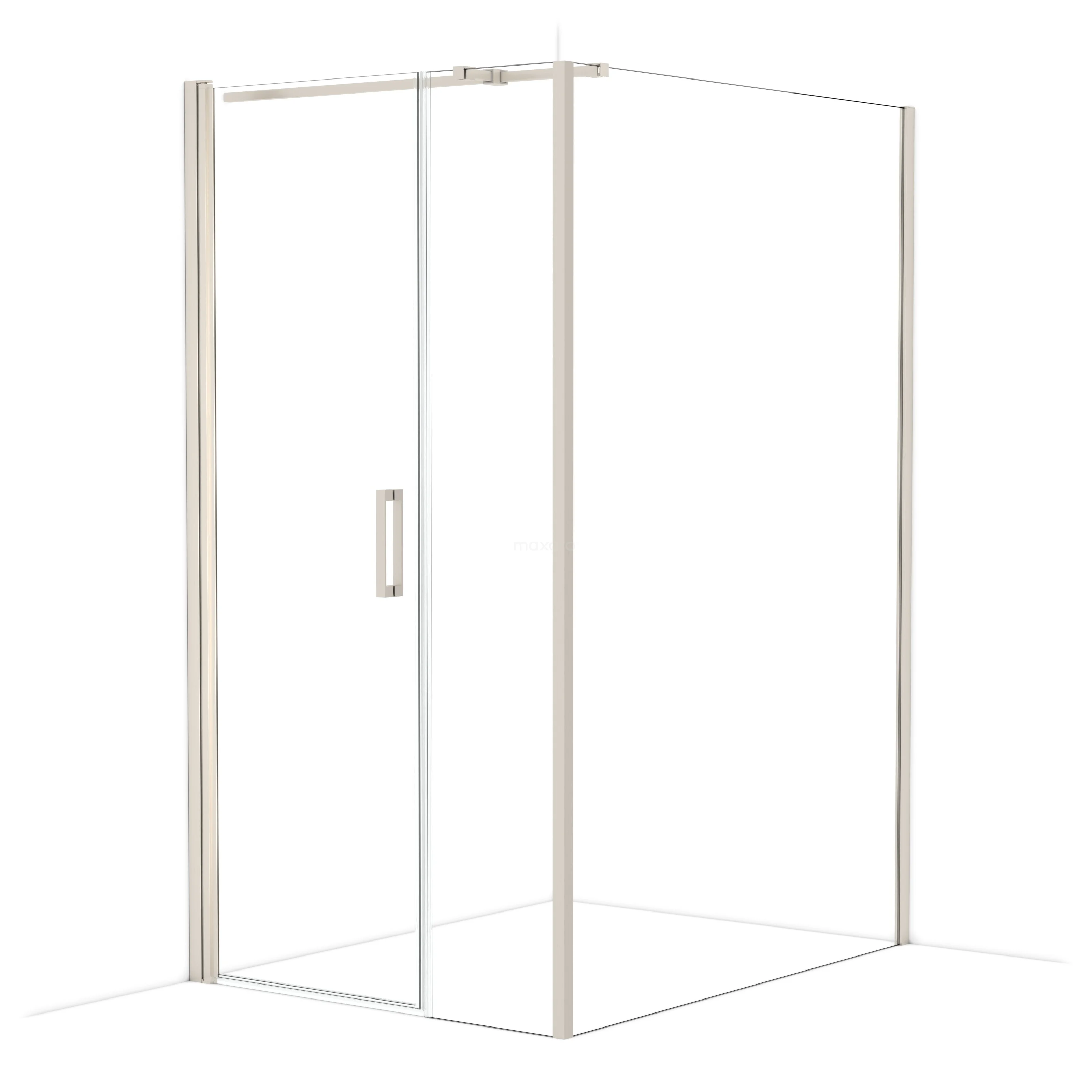 De douchecabine is uitgerust met een draaideur, waardoor u de volledige instapruimte ter beschikking heeft.