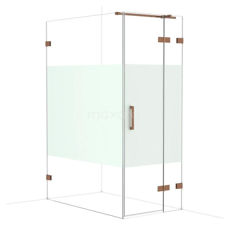 Diamond Douchecabine | 140x80 cm Glanzend koper Helder met matte strook Draaideur Rechthoek