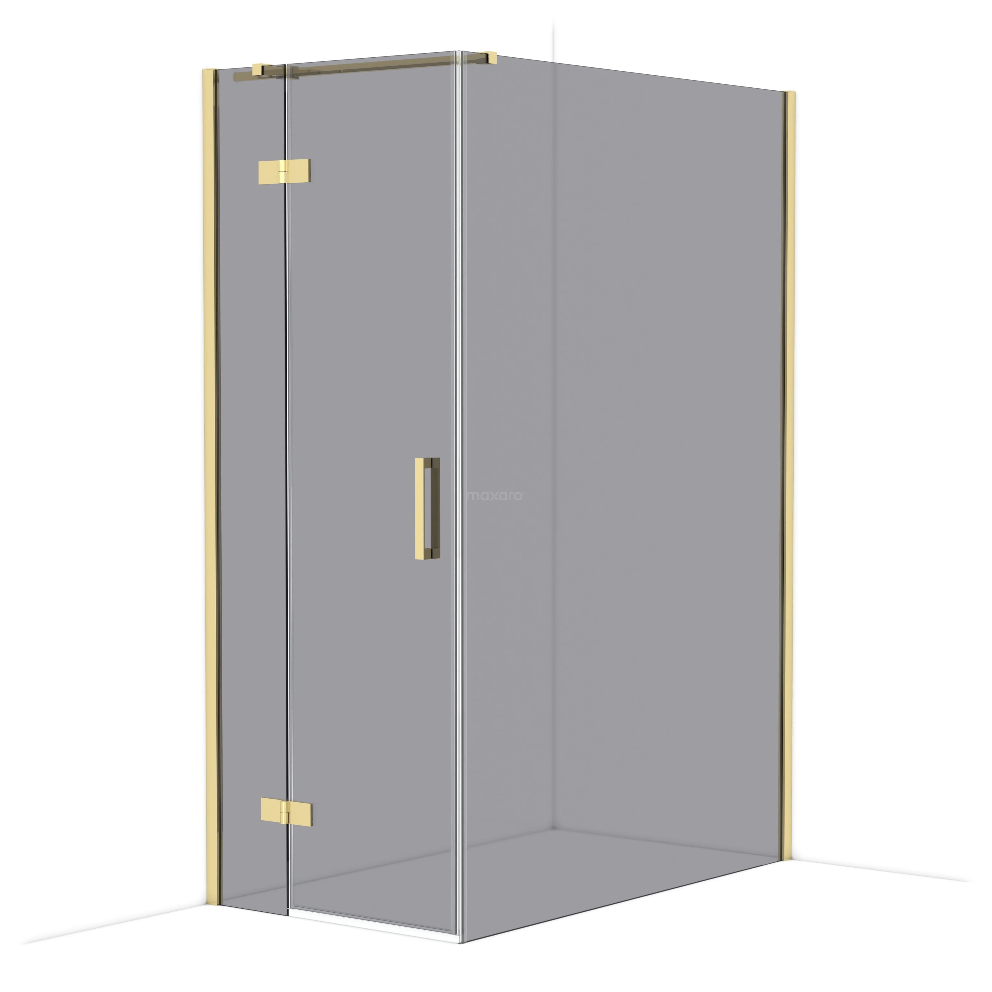 Douchewand van gehard grijs glas met strakke afwerking, ideaal voor moderne badkamers.