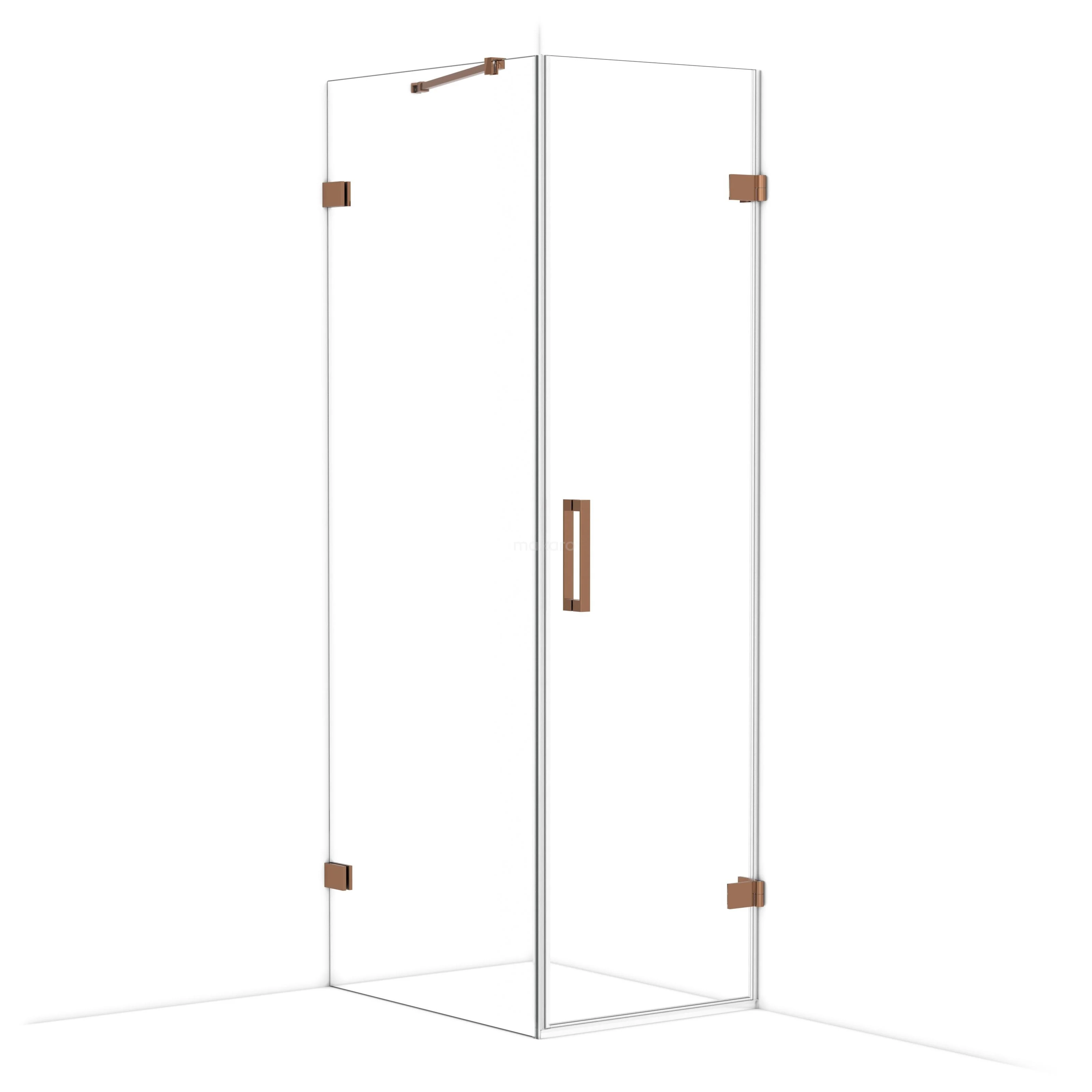 Diamond Douchecabine | 80x60 cm Glanzend koper Helder glas Draaideur Rechthoek